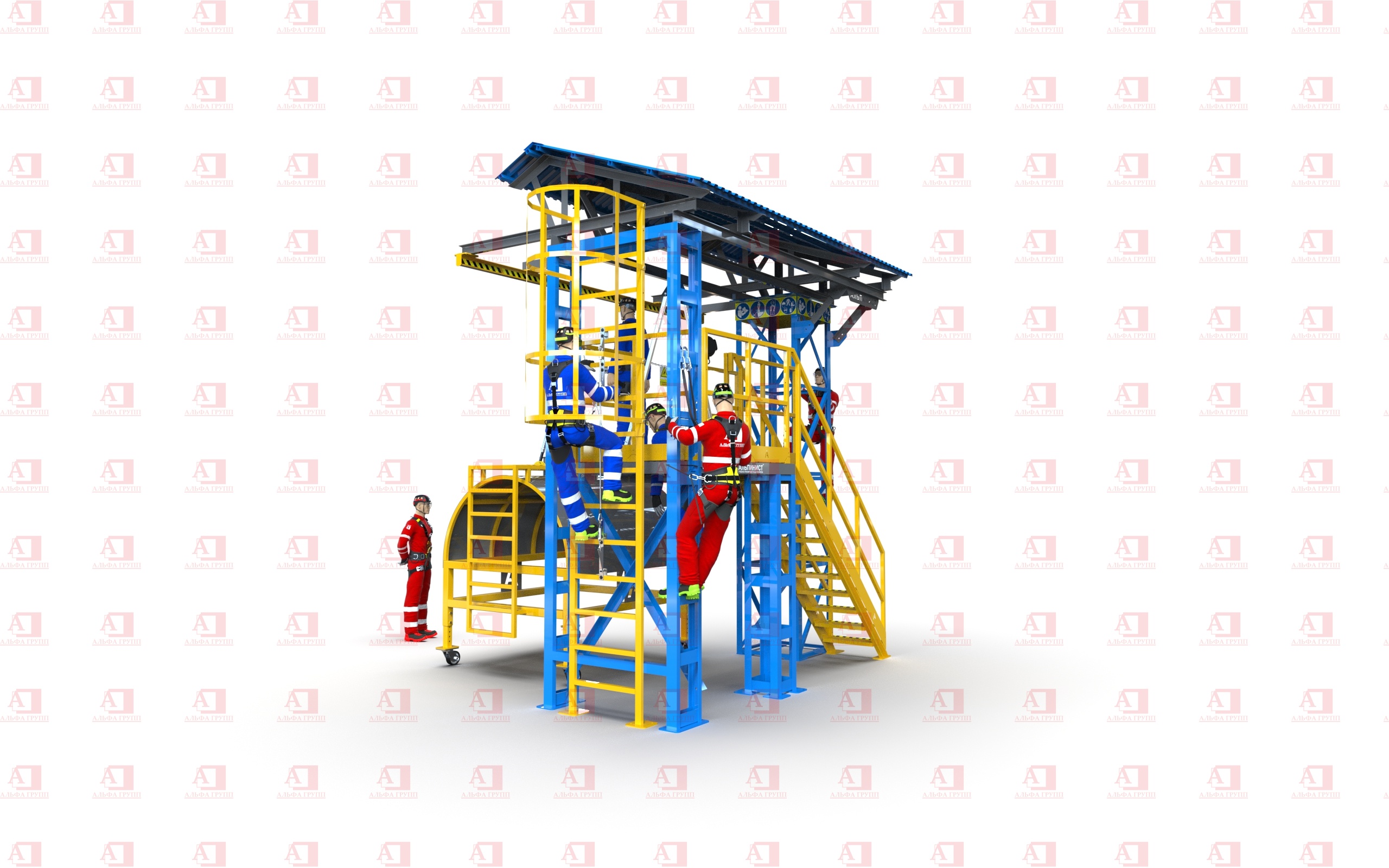 п. Яковлево. ООО "Яковлевский ГОК" проводит тренировки на учебном полигоне для повышения уровня безопасности при работе на высоте. В данном процессе используются полигоны "Альпинист 01-03-2" и "ПА-ЗП05".